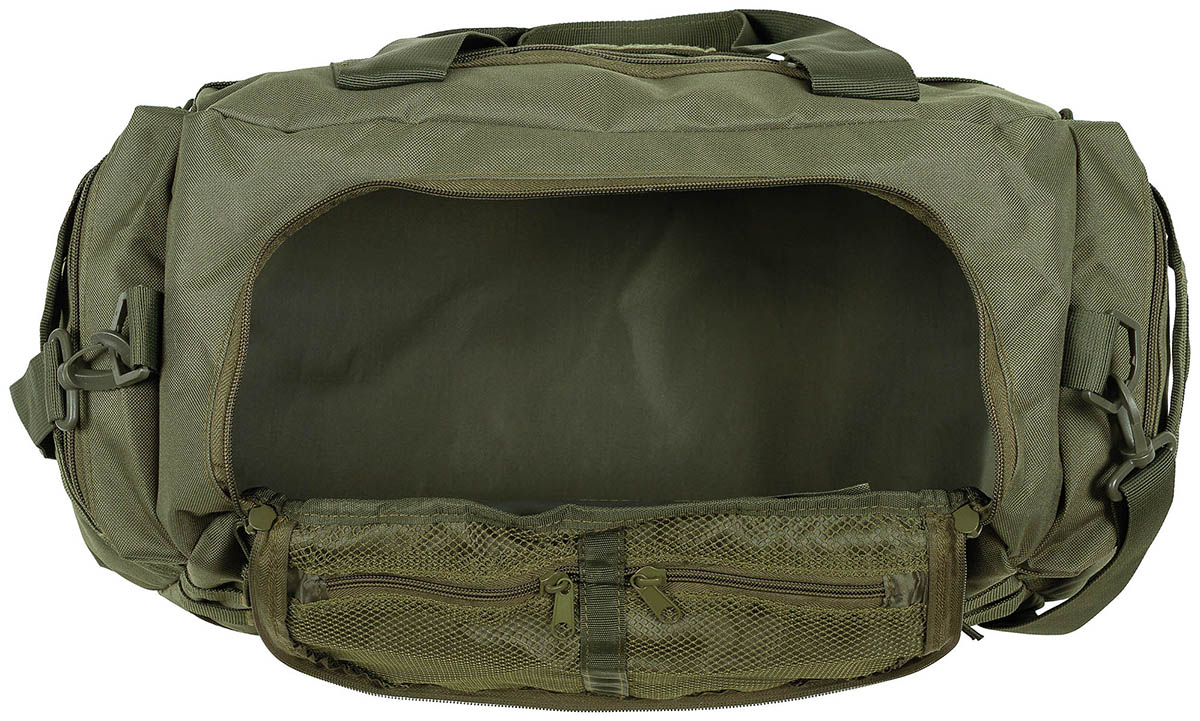 Noņemams apakšējais pastiprinājums 2 sānu kabatas ar rāvējslēdzējiem un 1 pārnēsāšanas rokturis katrā 1 kabata ar rāvējslēdzēju,